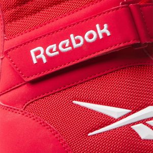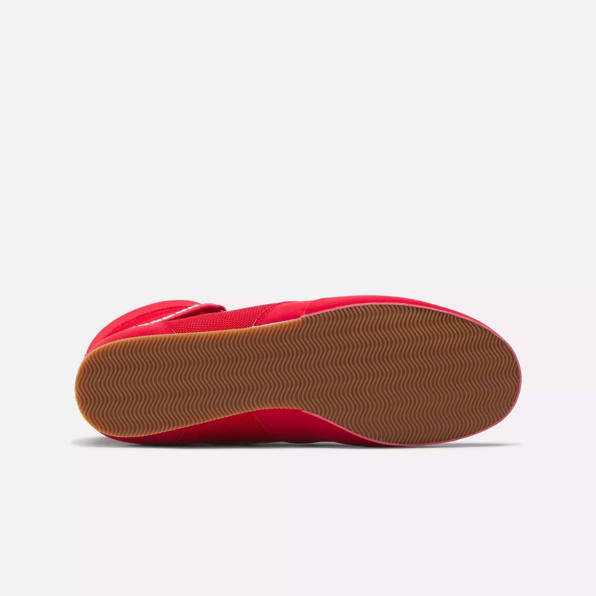 Channel lightning speed in these high top boxing shoes from Reebok. They have a breathable mesh upper with suede overlays and an ankle strap to secure the fit. A low stack height keeps you connected to the ground beneath your feet.