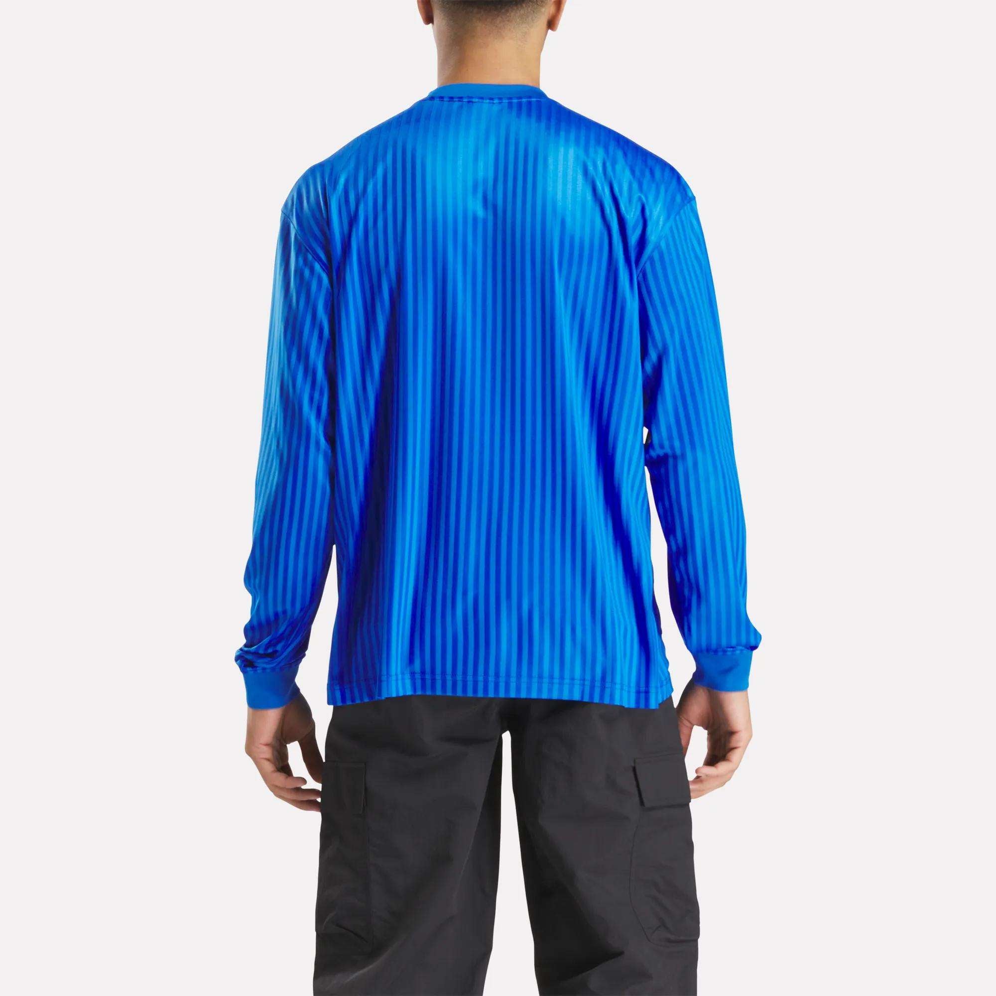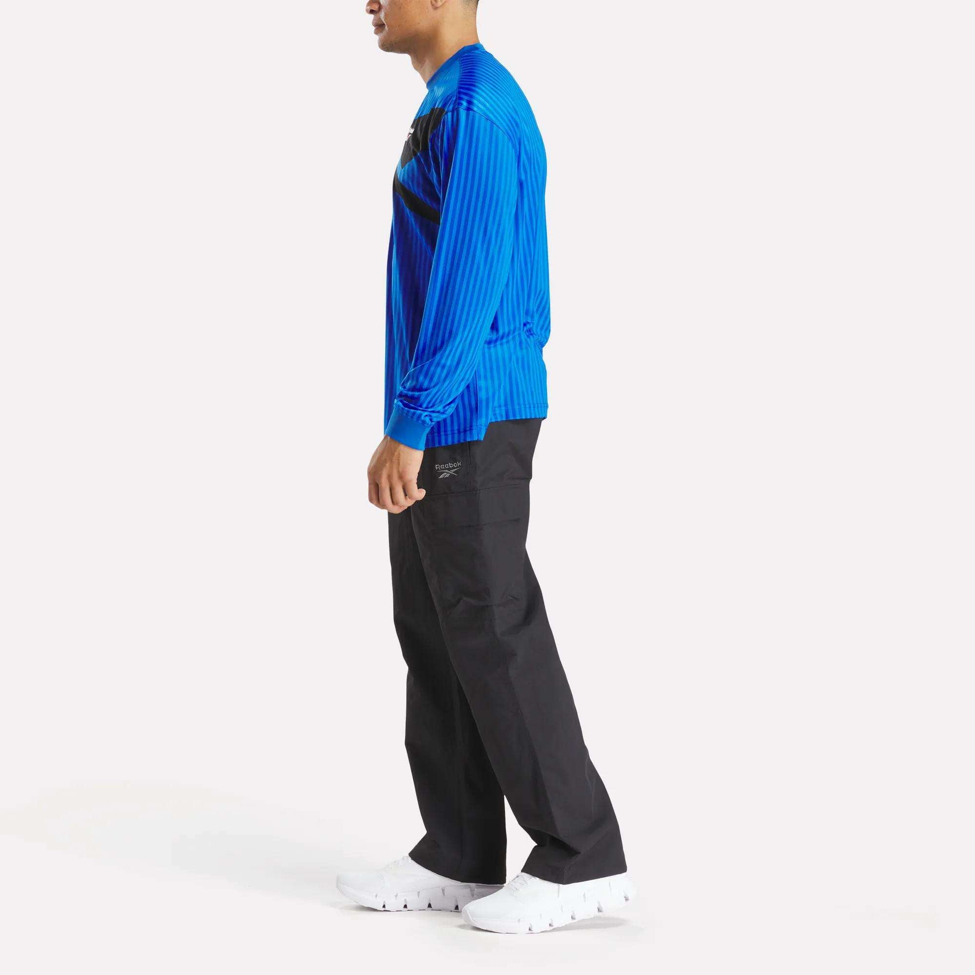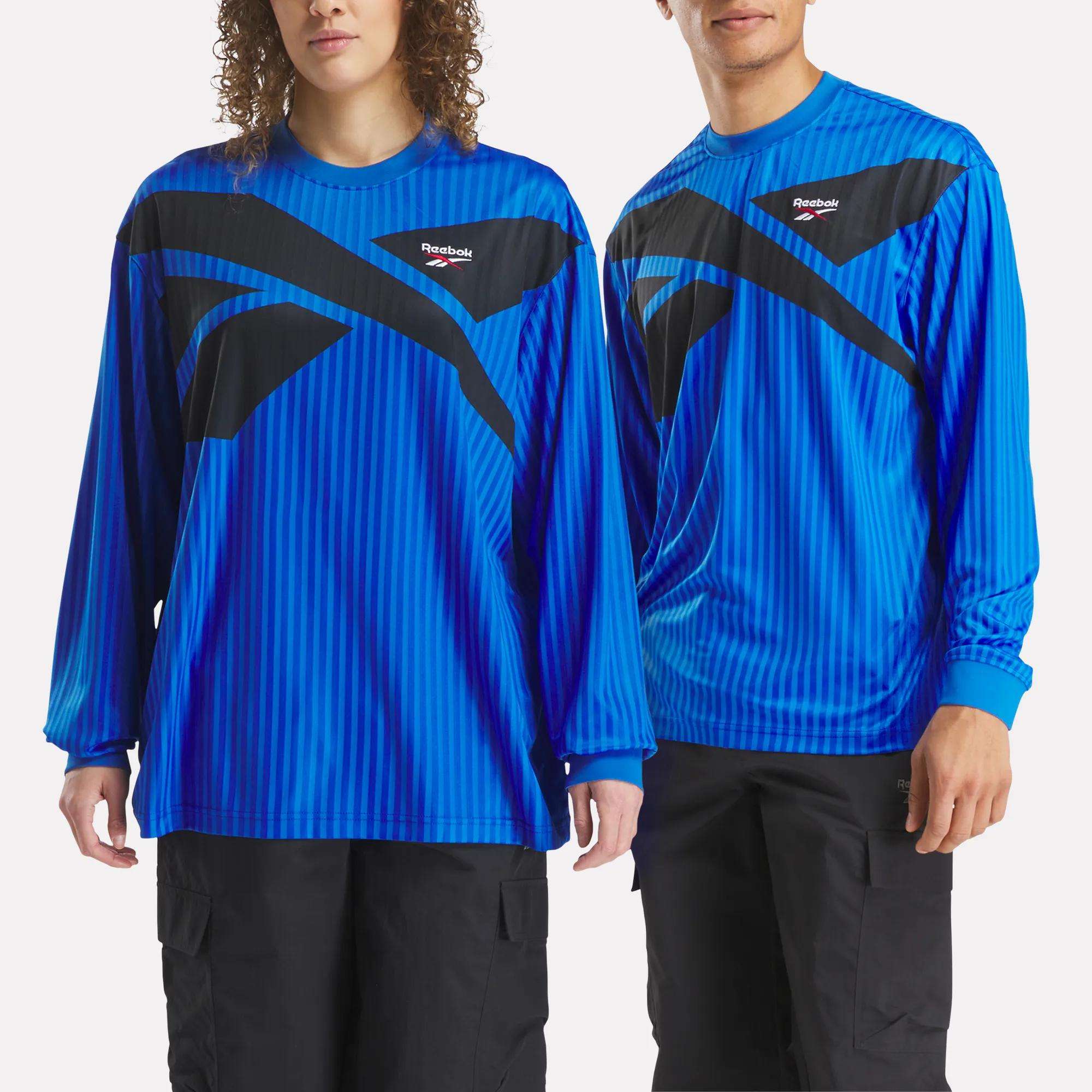 Go all out on Reebok when you wear this jersey. The fabric has a bit of texture to make it stand out in a subtle way. Stripes and embroidered details elevate your sporty look. An oversized Vector seals the deal.
