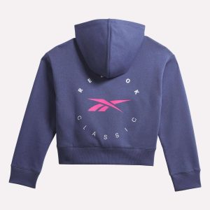 A cozy hoodie is perfect for chilly days and layering. This kids’ Reebok pullover hoodie is done in cotton-blend fleece that feels so soft. With a hood and kangaroo pocket. it’s a classic style that’s easy to mix and match.
