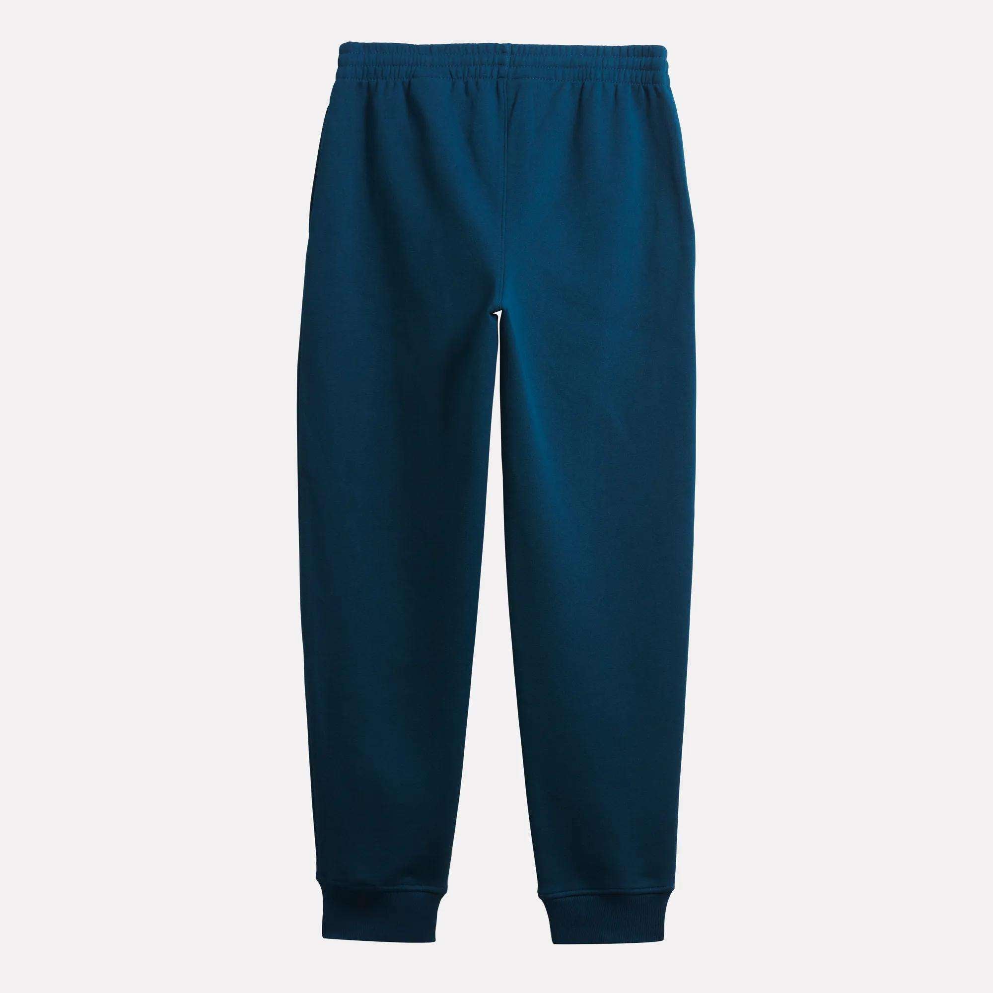 Warming up before a game or kicking back post-practice. kids will stay comfortable in these boys’ joggers. Soft and cozy. the pants are done in cotton-blend fleece. A logo on the thigh showcases Reebok heritage.
