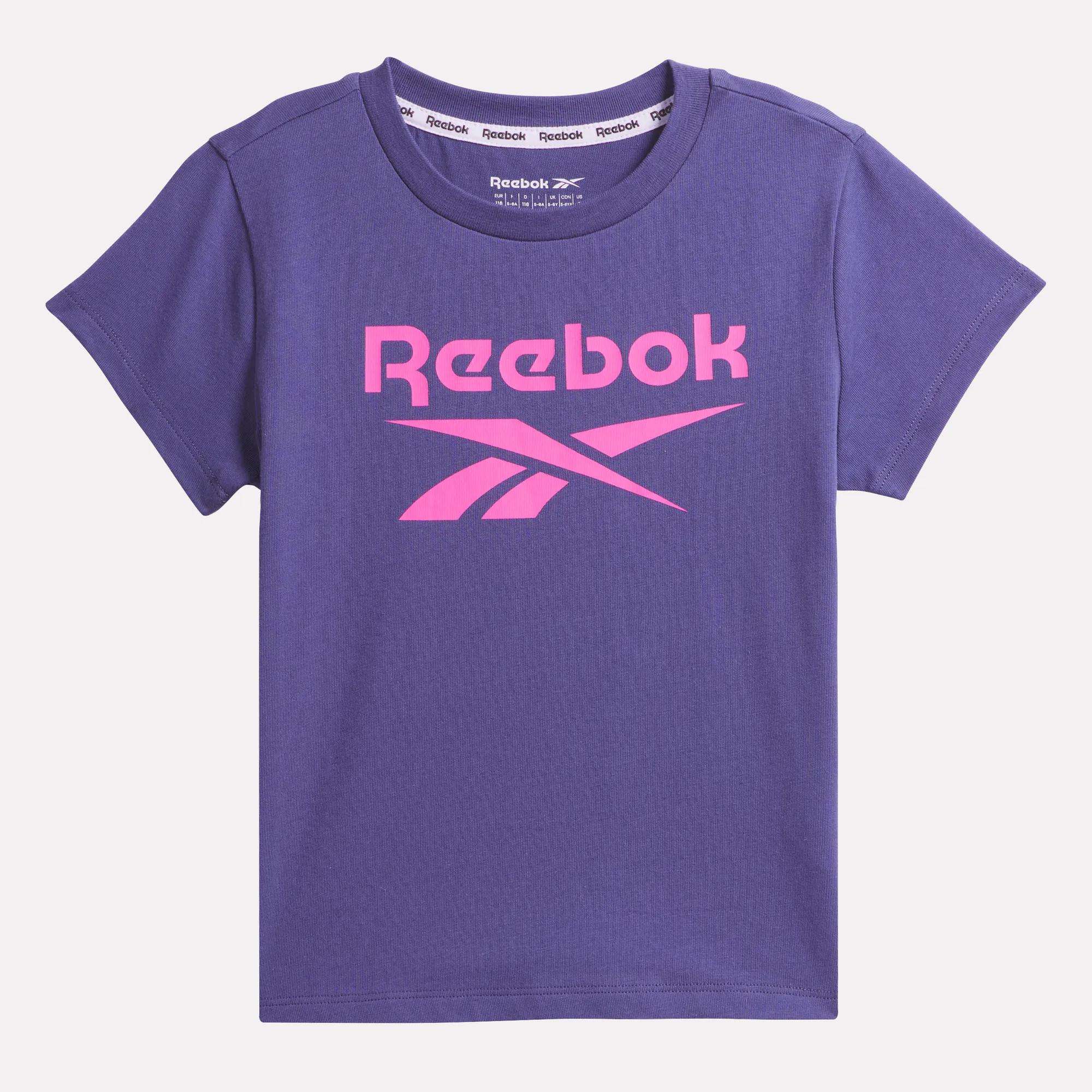 Comfy tees are essential for active kids. This girls’ short-sleeve t-shirt has a soft feel thanks to all-cotton jersey. A Vector logo on the chest showcases Reebok heritage.