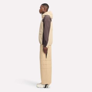 Presented in a colorblock design. this bomber jacket is cut from crinkled woven fabric to a relaxed fit. Voluminous sleeves and front pockets keep it rooted in tradition. while the logo appliqué adds a distinctive Reebok touch.
