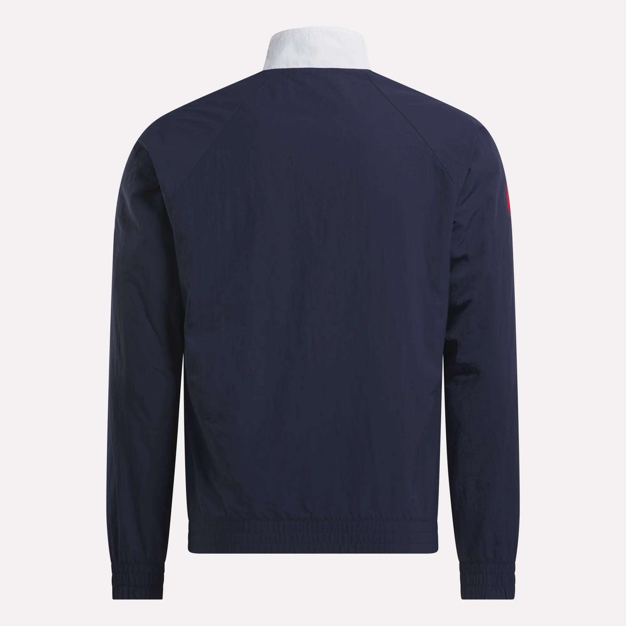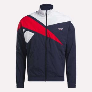 Weekend plans? This men’s Reebok track top has you covered. The regular fit layers easily over your favorite tee. A bold embroidered Vector on the chest roots your look in Reebok heritage.