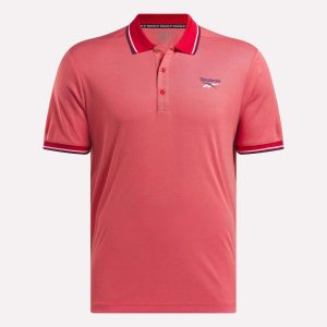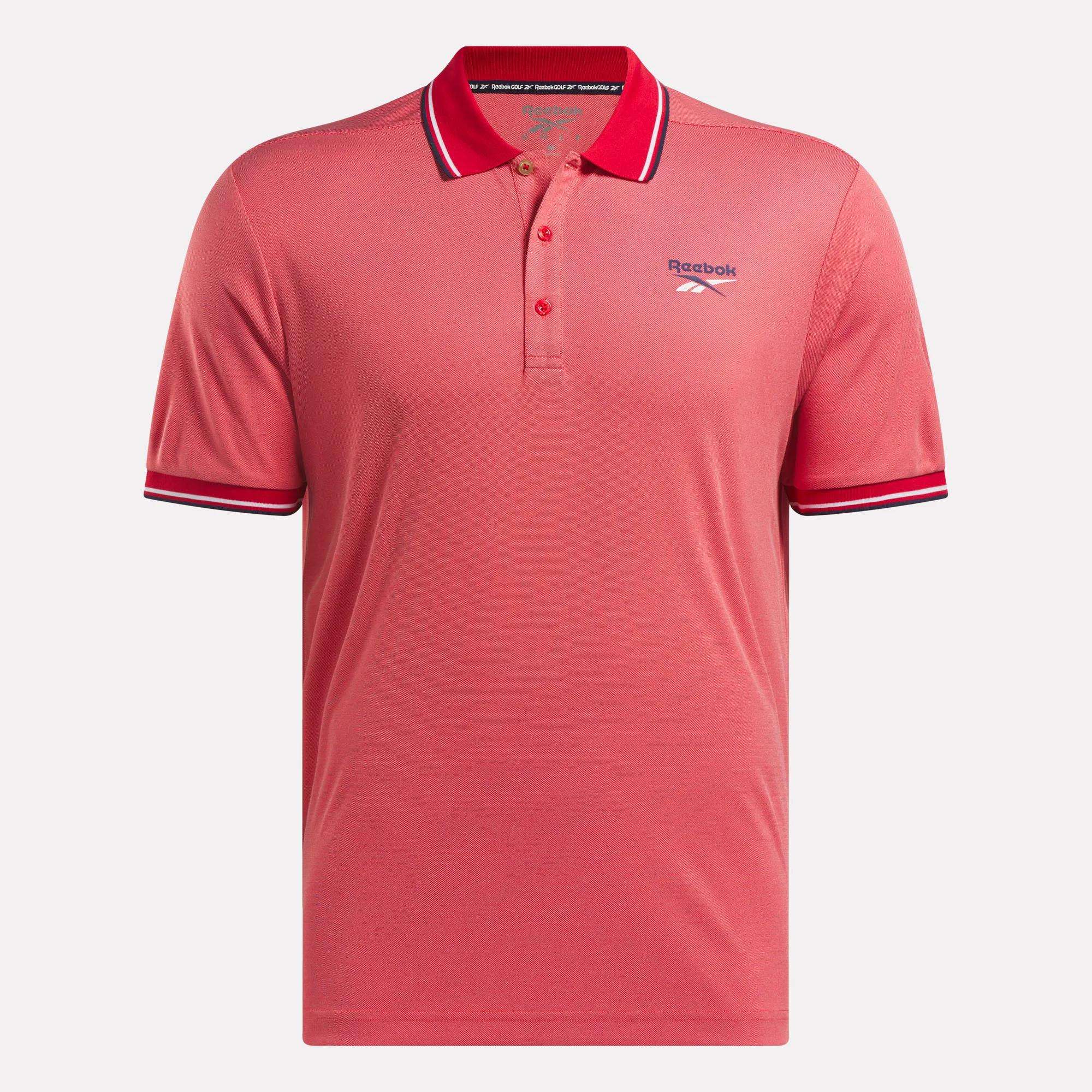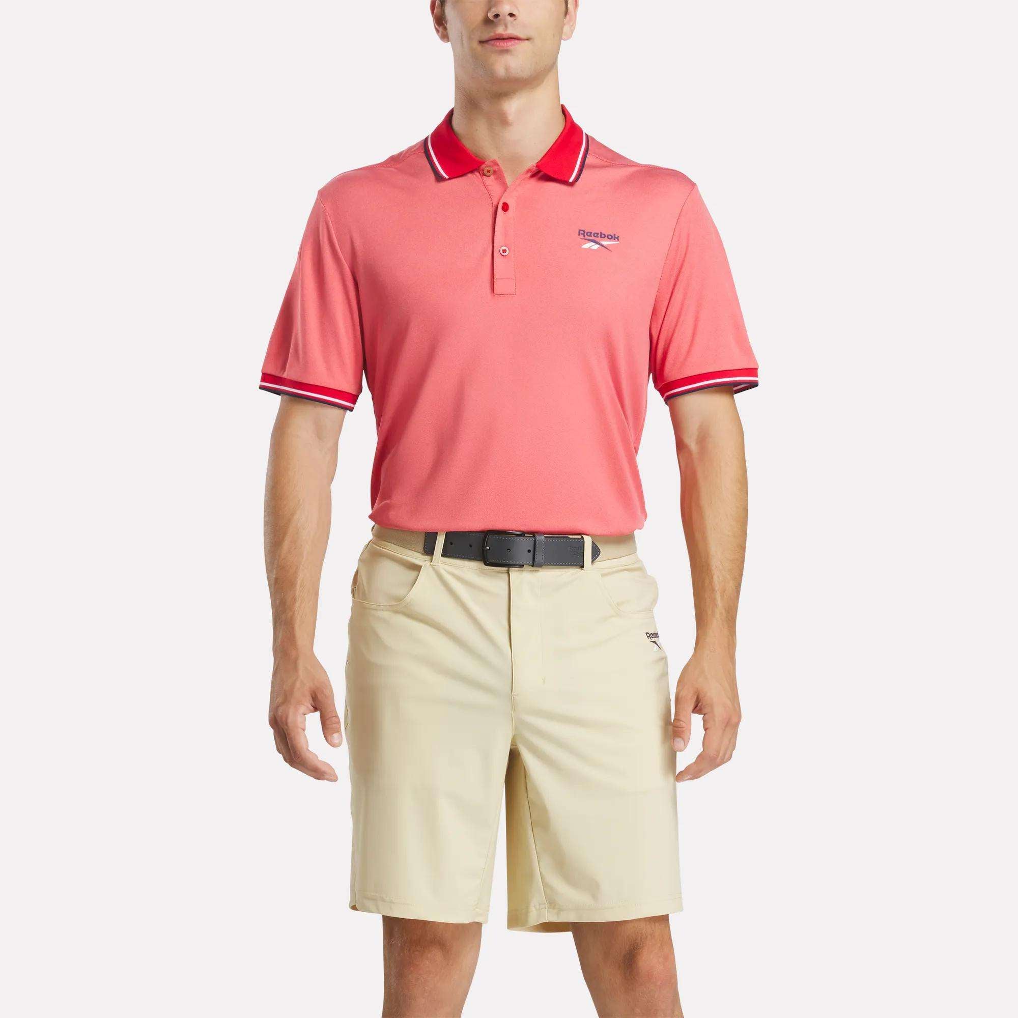 Hit the green in comfort and style. This men’s Reebok golf polo uses RBK-DRY tech to wick sweat. so you stay cool through every swing. and it’s built to stretch. so you can move freely. UPF 30+ provides coverage against the sun.