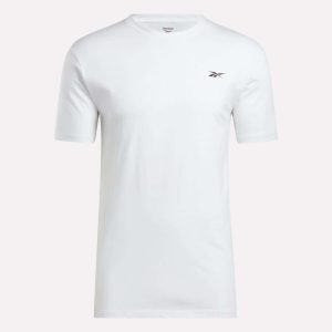 A daily go-to. This men’s t-shirt blends cotton and polyester for a soft. lightweight feel that works any day of the week. The relaxed fit keeps it easy. whether you’re lounging at heading to the gym. A small Vector logo adds that classic Reebok touch.