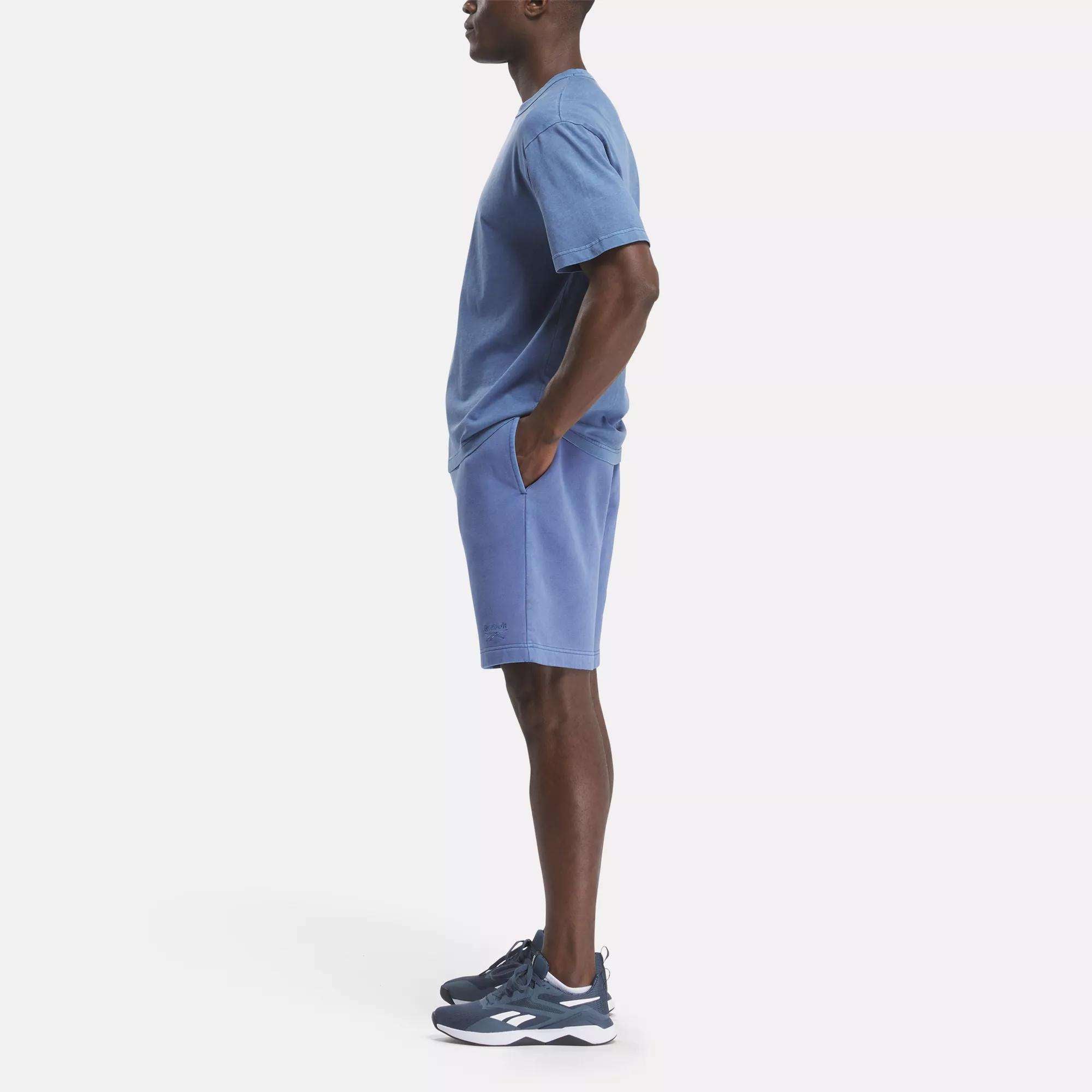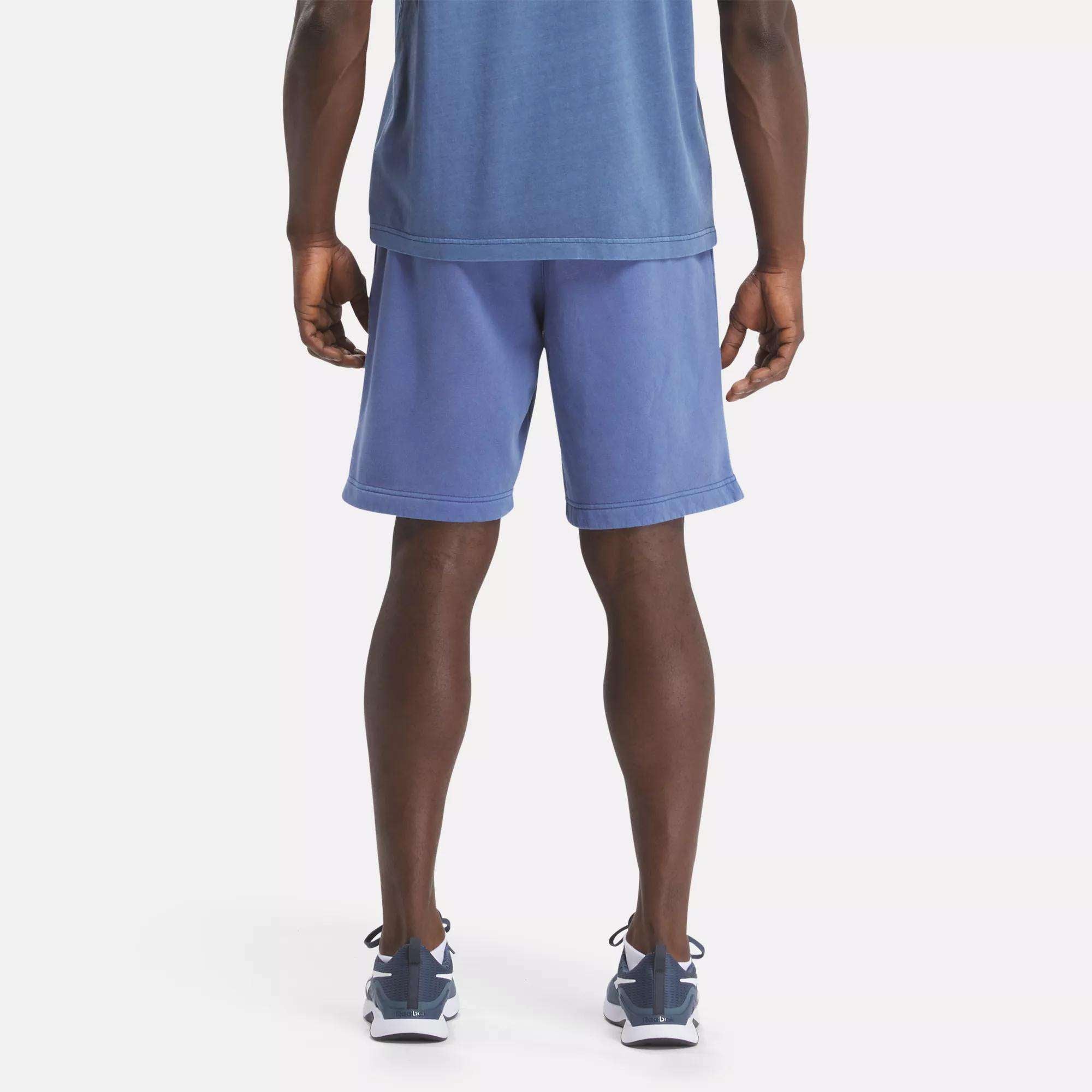 A special pigment wash gives these Reebok shorts for men a lived-in look that feels familiar and fresh. all at the same time. They’re made from a cotton-fleece fabric that’s soft to the touch and cut to fit just right. whether you’re on the go or maxing out downtime at home.