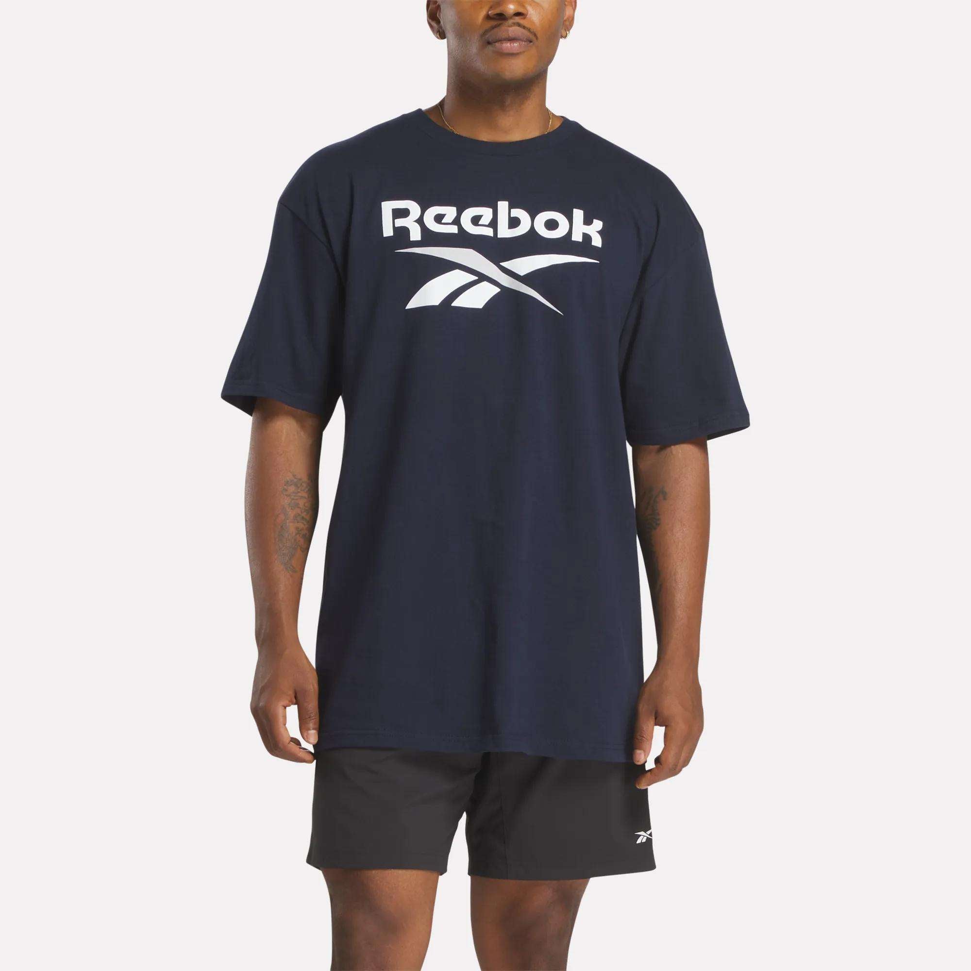 Keep it casual and comfortable in this men’s t-shirt. The relaxed fit gives you room to move. whether you’re hanging out or working out. Soft cotton feels great all day. And then there’s the stacked Vector logo for that classic Reebok vibe.