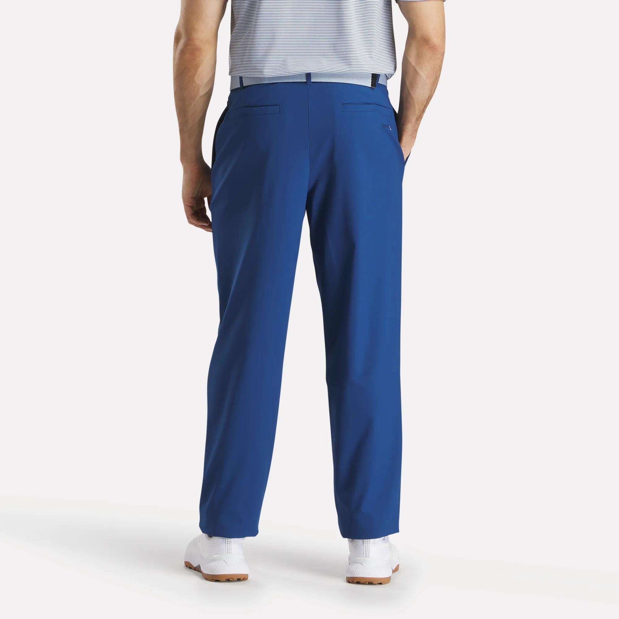 You’re always ready for the next round in these men’s Reebok golf pants. Four-way stretch fabric allows you to kneel. bend and swing with ease. RBK-DRY wicks sweat to keep you dry and focused. A button and zip closure give them the classic look of chinos.