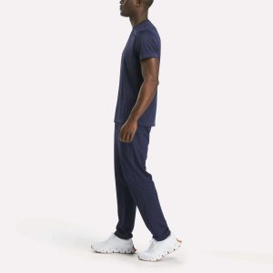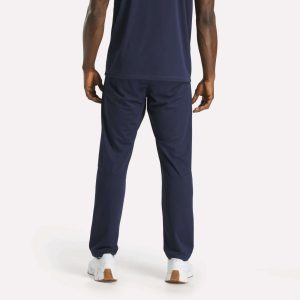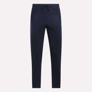 Push your limits in these Reebok training pants made for movement. Slim fit keeps you streamlined. while the knit tricot fabric stays soft and flexible as you stretch or squat. The elastic waistband locks in comfort. so you stay focused on every rep. Perfect for gym sessions or active days.