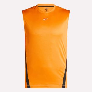 Stay comfortable through HIIT workouts and weight training sessions in this men’s sleeveless t-shirt. Lightweight jersey fabric allows you to move freely without distraction. Reebok graphics keep the look rooted in sport.