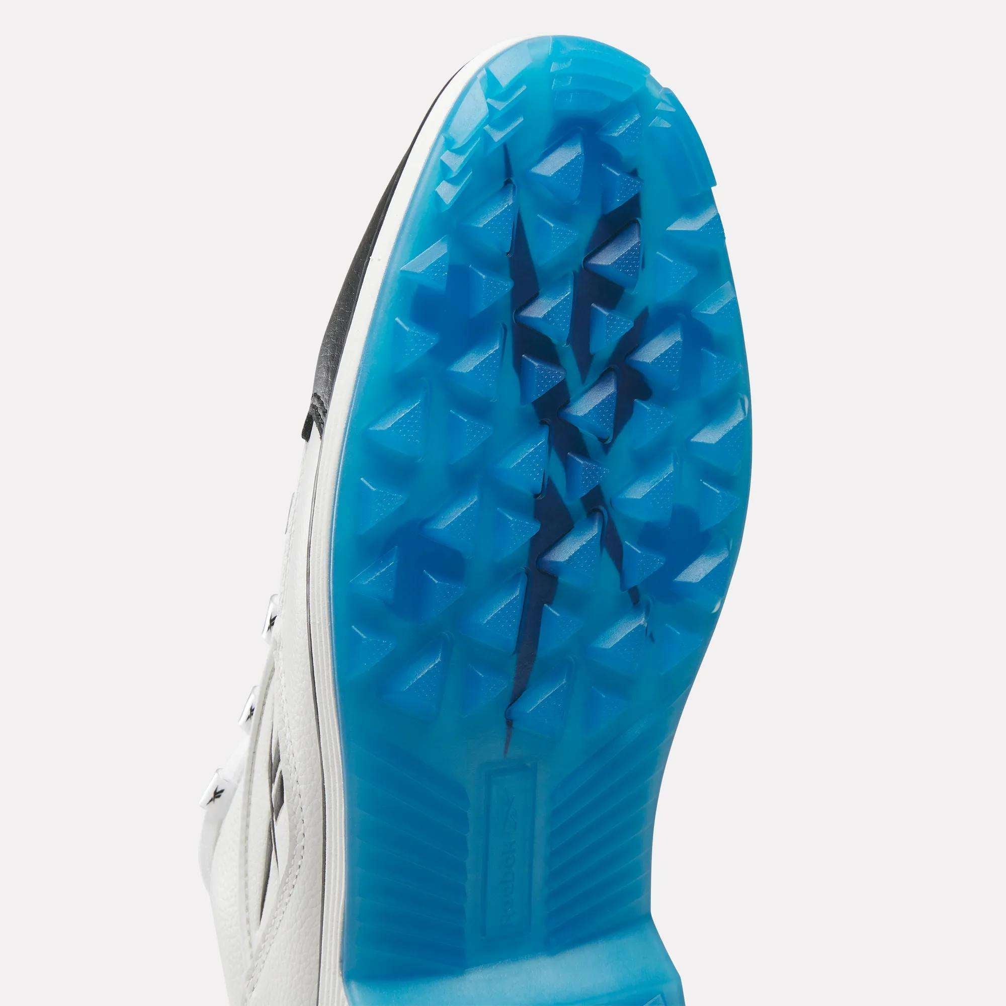On the course or in the clubhouse. elevate your experience in these Reebok golf shoes. The full grain leather upper has a contrasting leather toe that’s inspired by a heritage basketball silhouette. The spikeless crystal outsole makes it easy to transition from the links to the dining room.