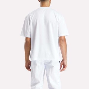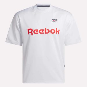 Let the world know you’re on Team Reebok when you wear this jersey. A Reebok logo appears in the jacquard fabric for extra texture. An oversized Reebok logo has a sponsor-style look. An embroidered crosscheck signs things off.