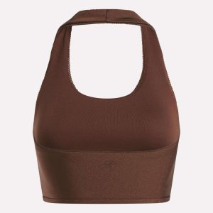 This women’s Reebok halter bra is glam and unapologetic. just like basketball phenom Angel Reese. While the shiny fabric gives it a luxe. standout look. lace trim adds a touch of softness. Stretch fabric is lined with power mesh to hold you in while you move.