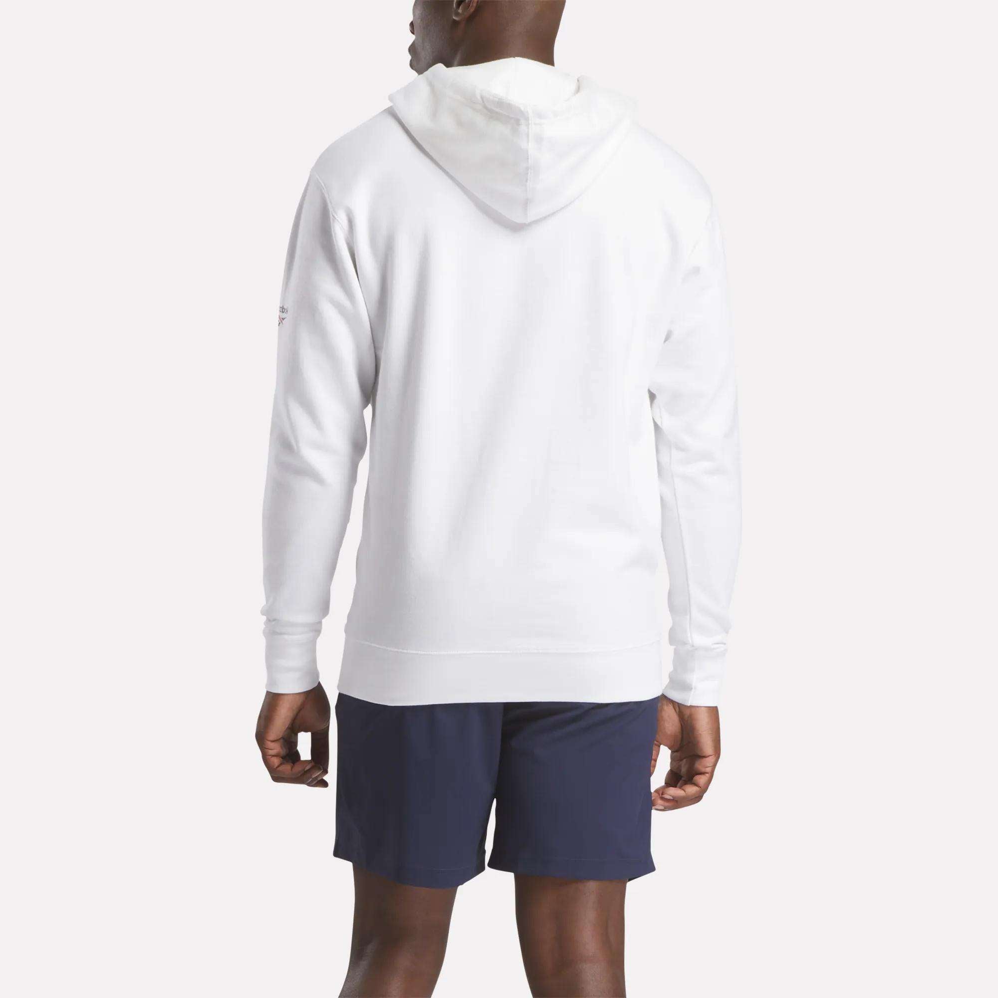 Your F45 Training grind deserves this Reebok hoodie. Soft cotton-blend fabric keeps you comfortable through warmups. cool-downs and post-workout lounging. It’s cut to layer easily over your gym gear.