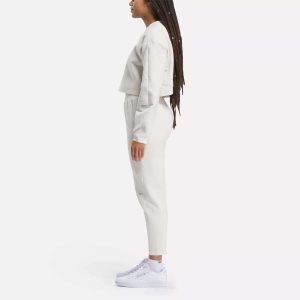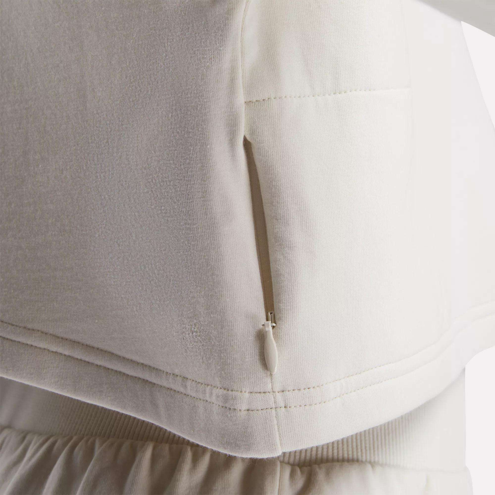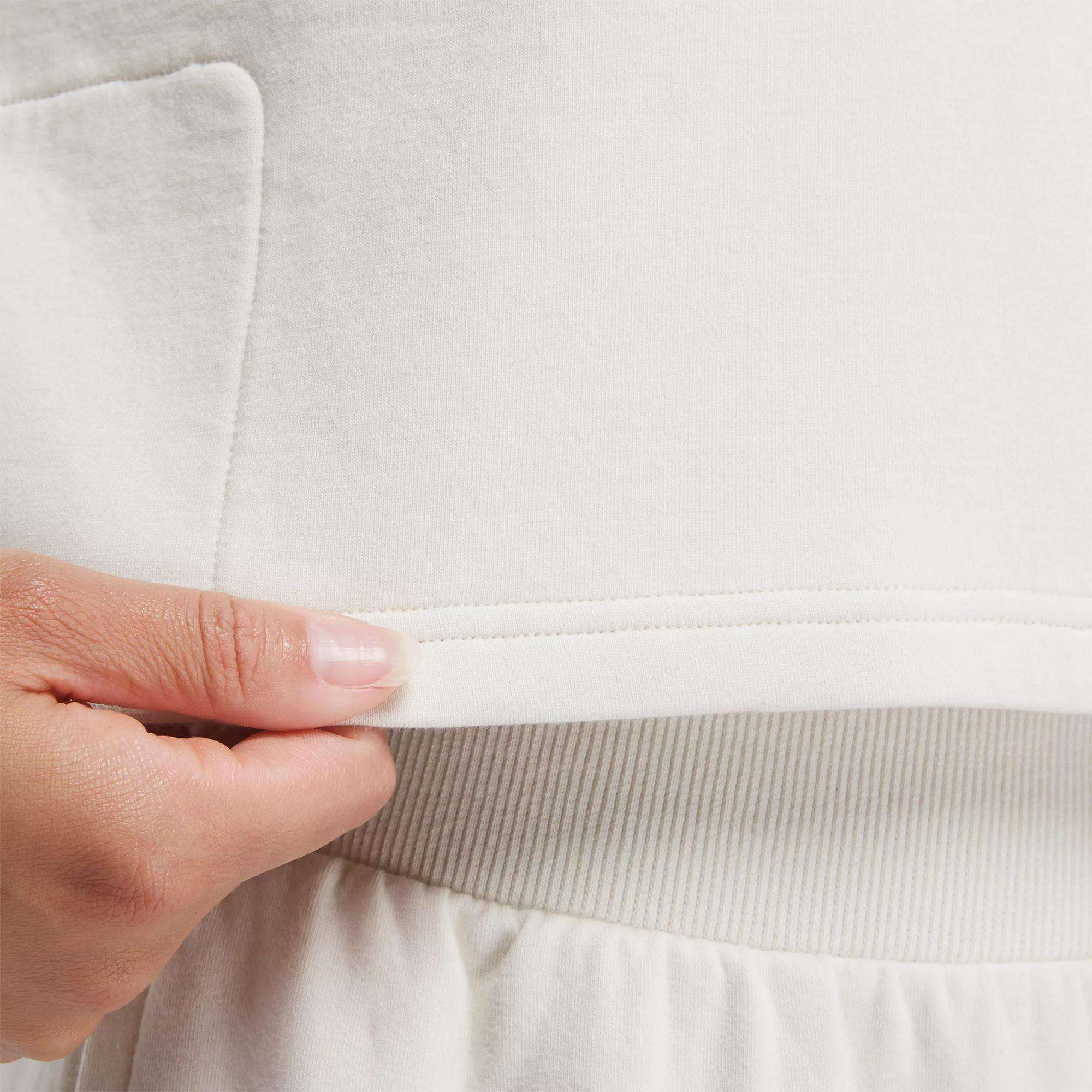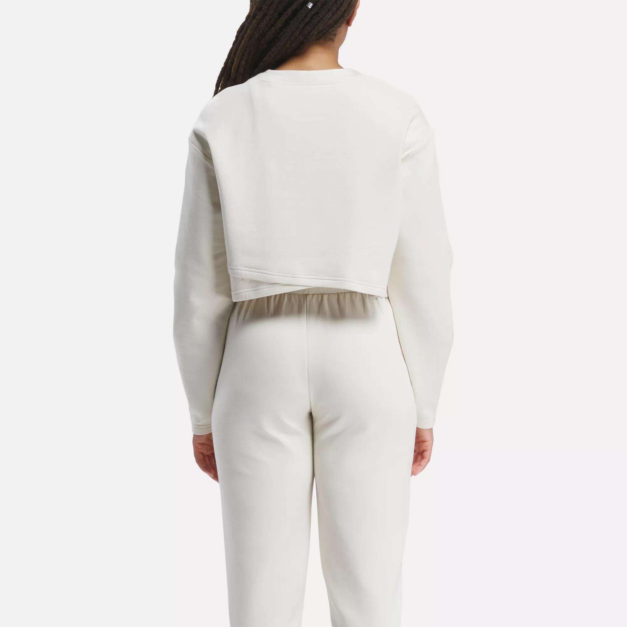 Go to and from the studio in sporty style. This women’s Reebok sweatshirt is made with a super-soft cotton blend that’s perfect worn as a layer to and from the gym. but sleek and polished enough for your favorite brunch spot. The slightly cropped length and overlap detail in the back give it a modern look.