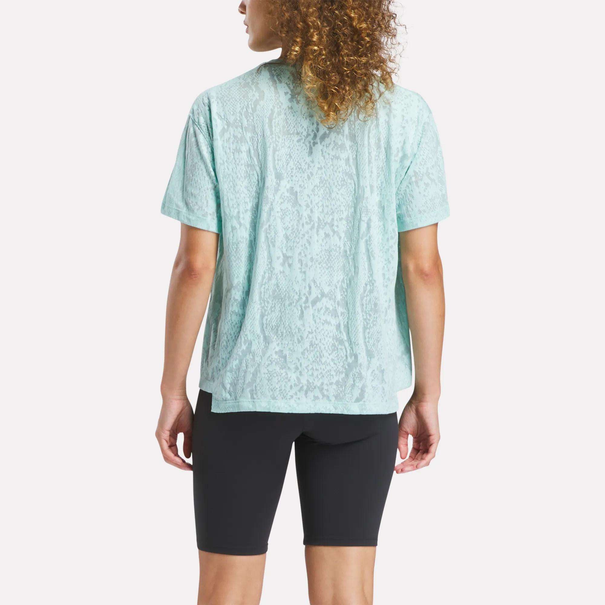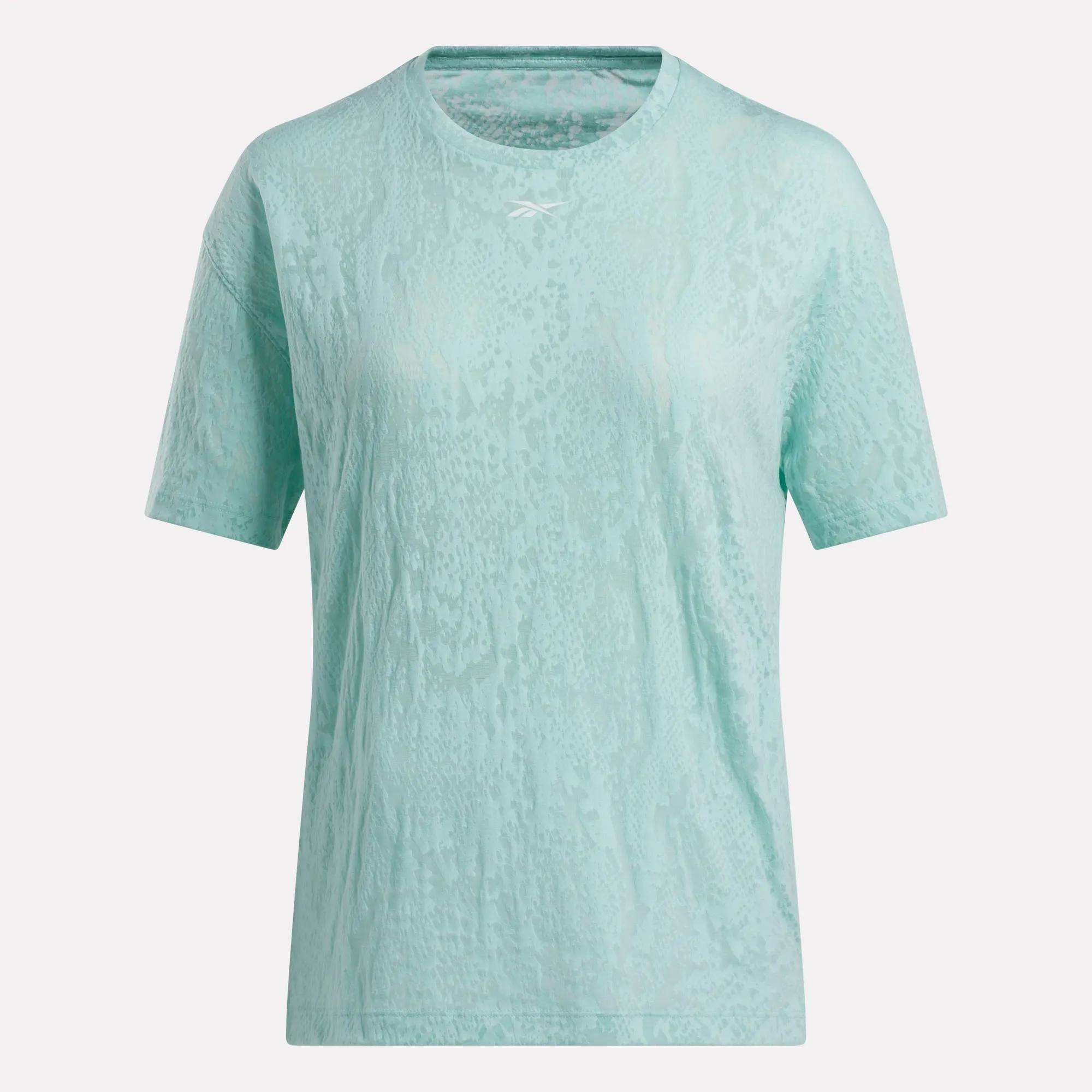 The gym’s not the only place you’ll want to wear this women’s Reebok t-shirt. The allover burnout pattern delivers subtle style. An extra-roomy fit gives you freedom to move in the weight room. in cardio classes and while running post-workout errands.