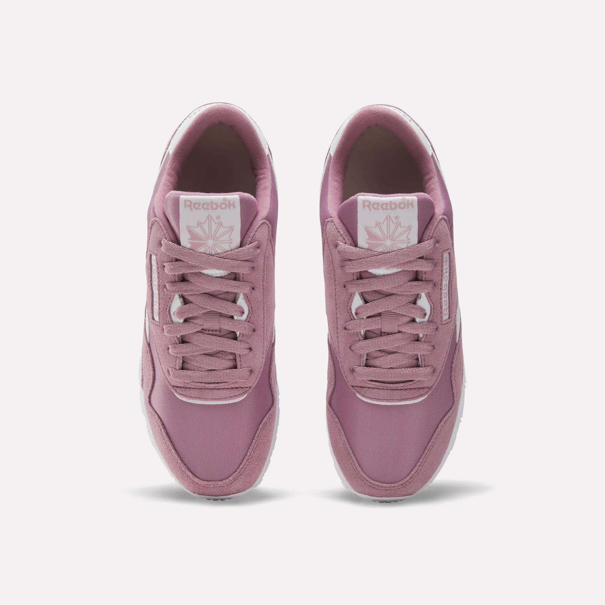 Inspired by ’70s runners. these women’s Reebok shoes add retro style to your rotation. A nylon upper with suede overlays is both lightweight and stylish. EVA midsole cushioning adds all-day support. whether you’re on the go or kicking back.