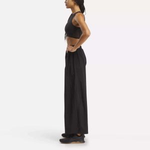 Strike a stylish pose in these women’s Reebok pants. They have super-wide legs and bold slits on the sides. Crinkle nylon fabric creates a textured look. and the relaxed fit makes them slouchy and easy to wear. Pair them with a crop top to stand out in any setting.