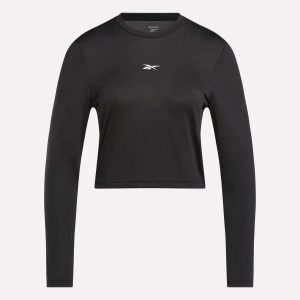 Train hard. look sharp. This women’s Reebok slim-fit crop tee is built for movement with RBK-DRY sweat-wicking fabric that keeps you fresh through every rep. The tapered design hugs your body for a streamlined feel. while 100% recycled polyester brings sustainability into your workout game.