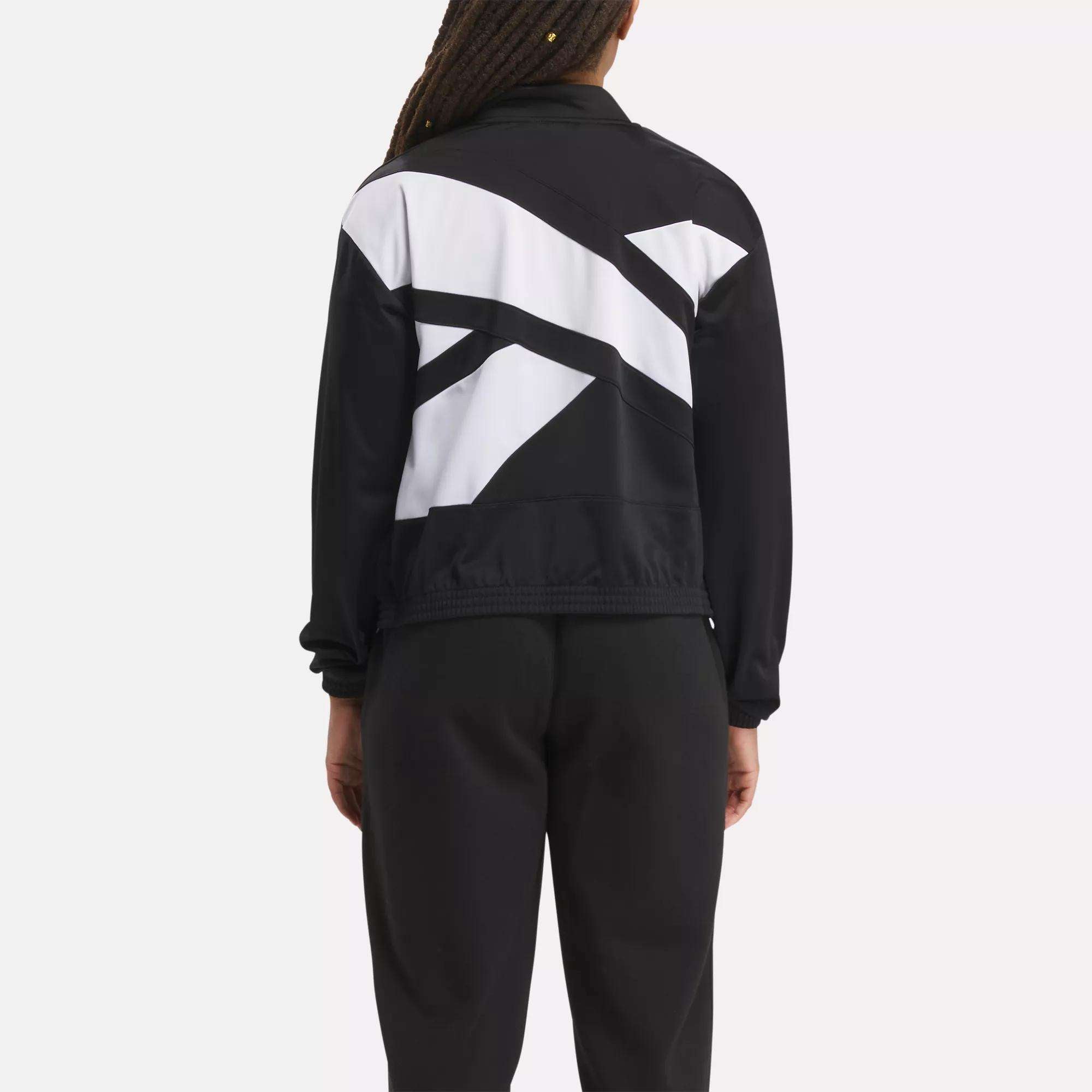Totally chill in front. loud and proud in the back. A big Vector logo on the back of this women’s track jacket shows your sporty side. Smooth. silky tricot fabric. a staple on the field and in the gym. keeps it rooted in athletic heritage.