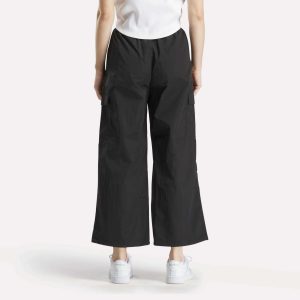 Hard-working style. These women’s Reebok pants show off a utilitarian look with cargo pockets. Nylon fabric with a slight sheen adds dimension. A relaxed cut gives them an easygoing vibe.
