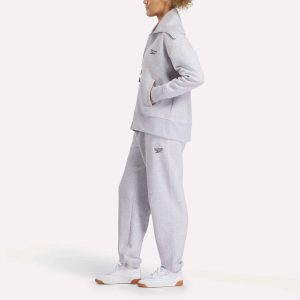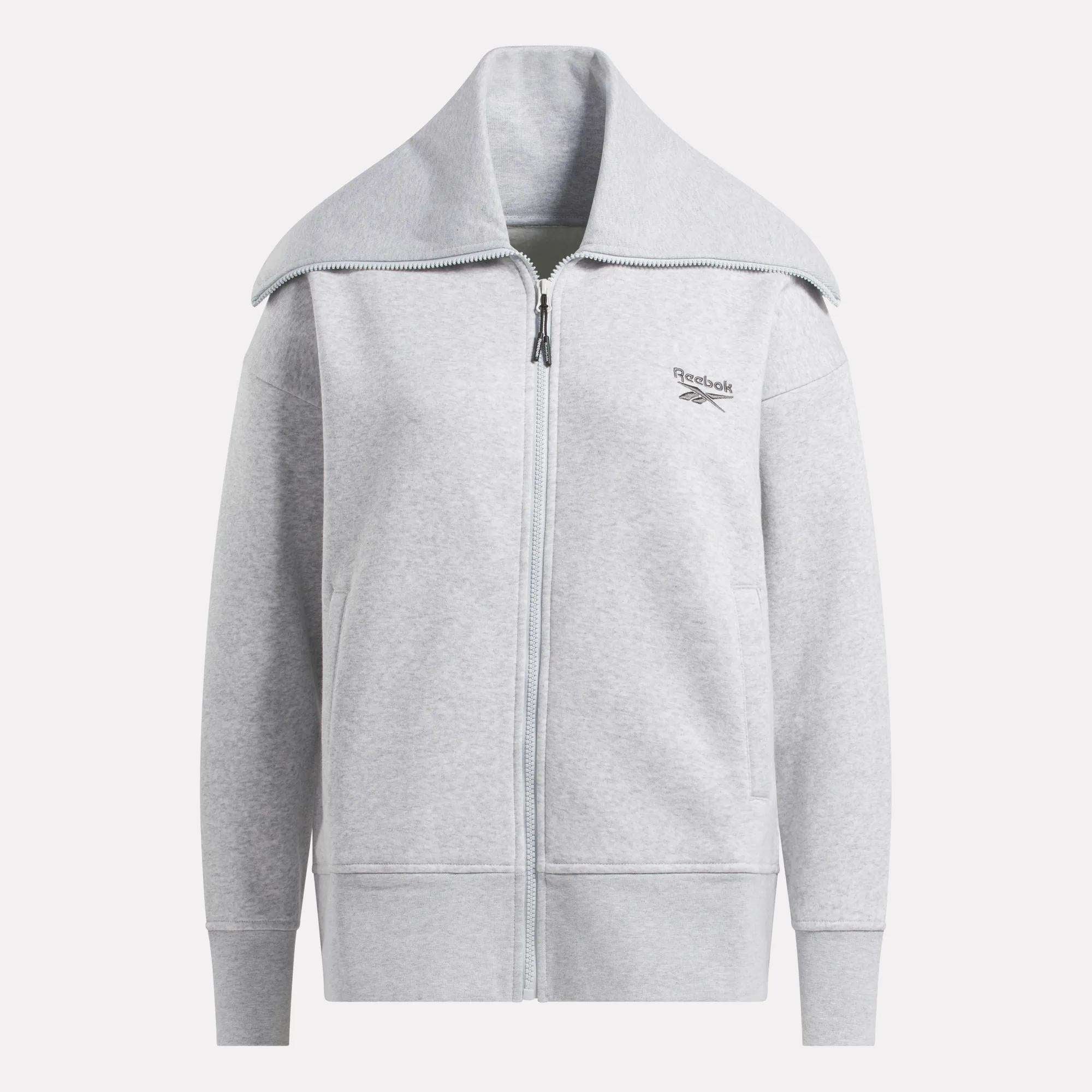 The epitome of casual cool. This women’s Reebok zip top throws your style back to the ’70s with a striking. oversized collar. Soft fleece is all about comfort. and the relaxed fit gives you room to move.