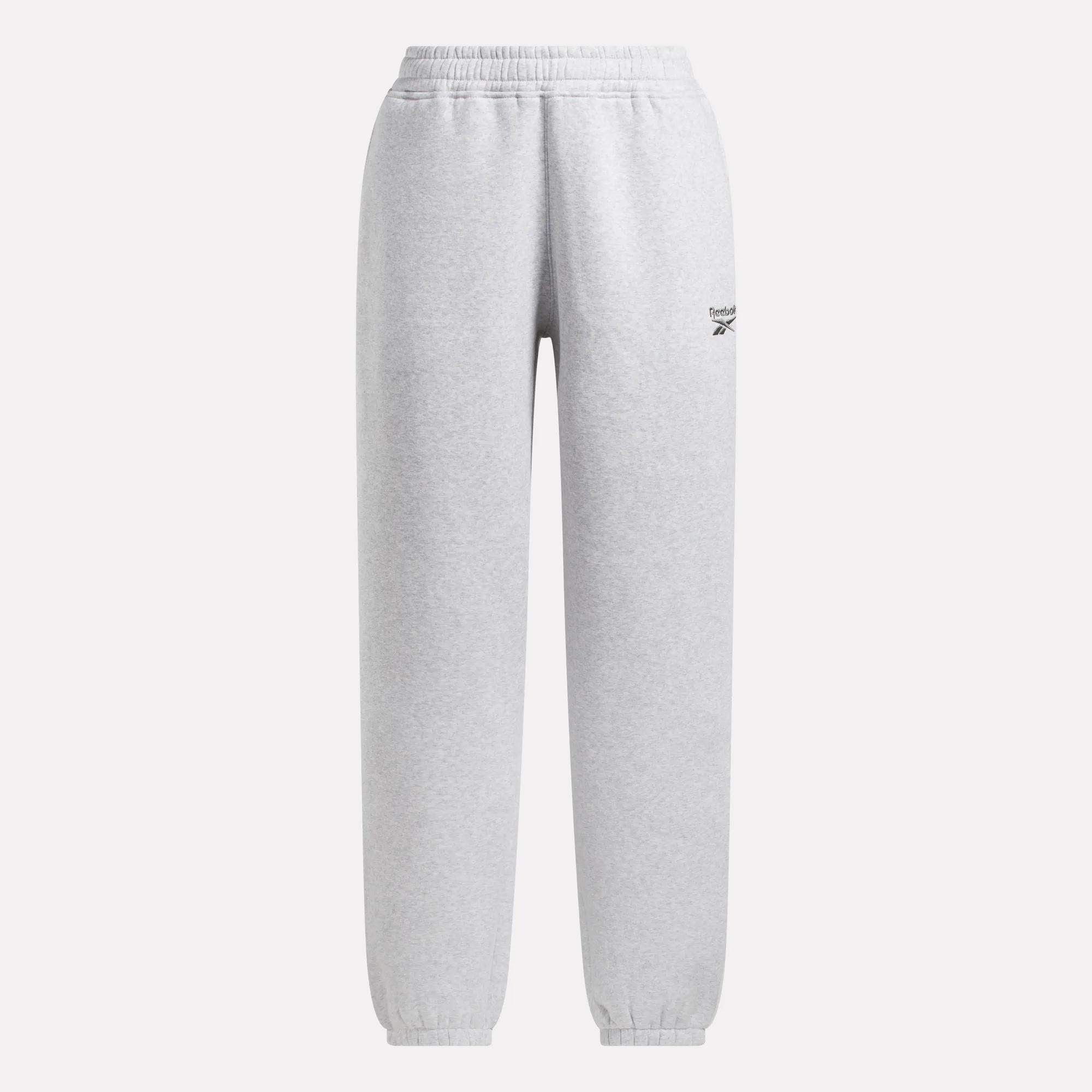 Kick back or head out in these women’s Reebok sweat pants. Made for everyday wear. the soft fleece fabric feels cozy all day long. An elastic waistband holds them comfortably in place. and embroidery adds the finishing touch.