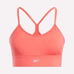 Wear this Reebok tri-back sports bra and put a little style in your training session. The soft. V-neckline creates a flattering look. The straps form a triangle pattern out back and a keyhole cutout below add breathability. Speedwick tech keeps you comfortable and dry as you lift.