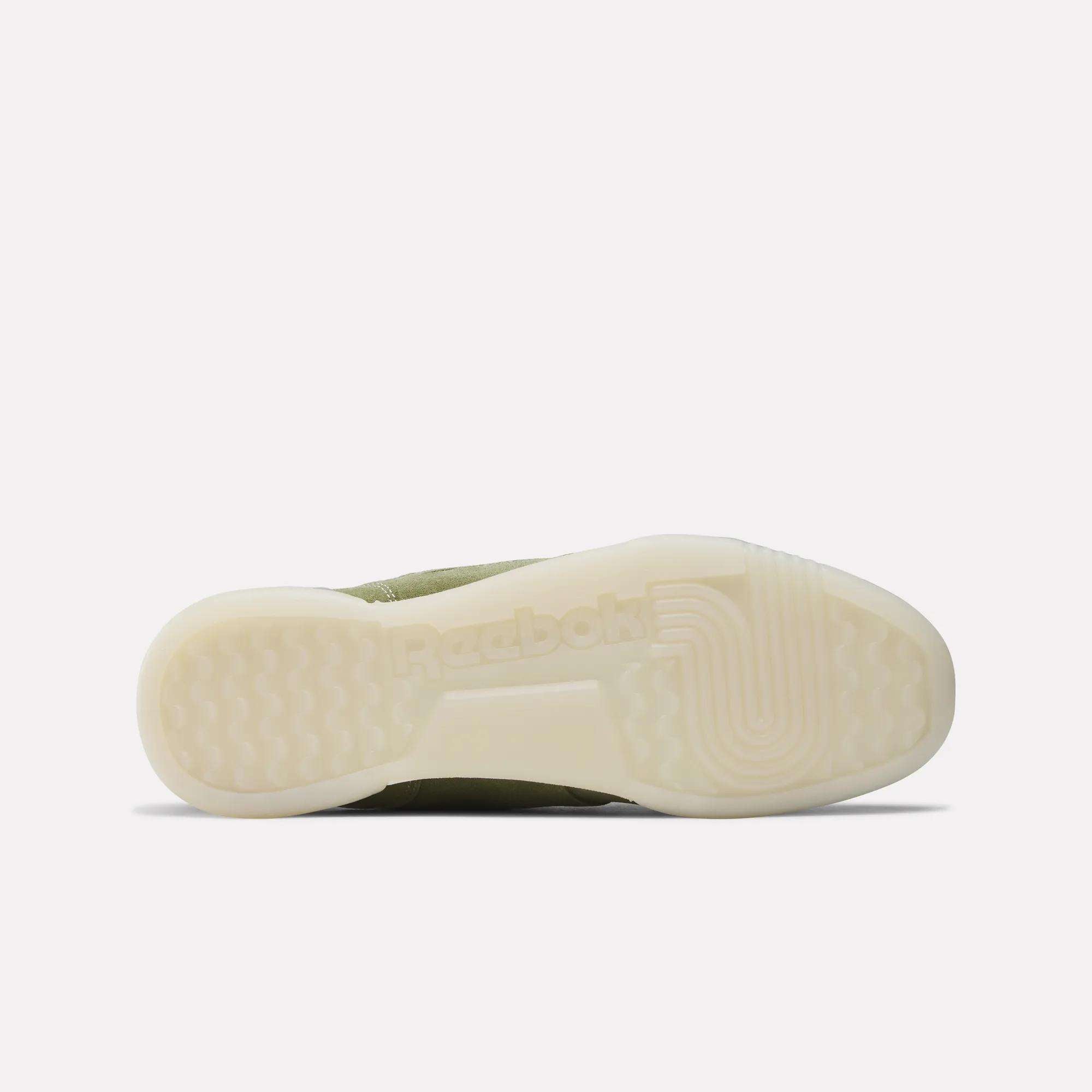 A gem from our archives returns. bringing ’80s fitness style back with it. The Reebok Workout Plus shoes relaunch an old-school icon — instantly recognizable with authentic details like the H-strap and split outsole. No longer made for aerobics class. this version is all about style with its suede upper. white deco stitching and milky cupsole.